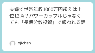 お金 夫婦で世帯年収1000万円超えは上位12%?パワーカップルじゃなくても「長期分散投資」で報われる話