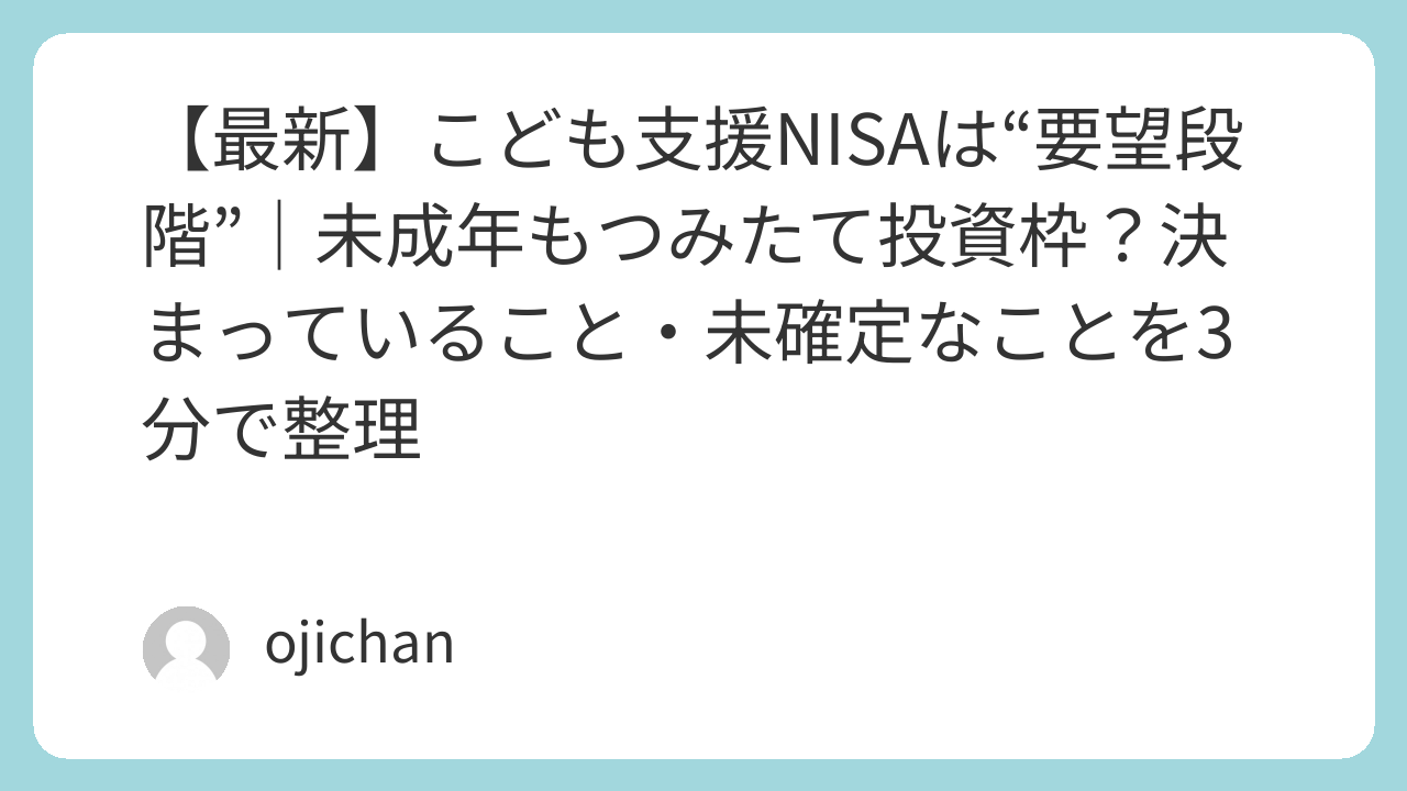 【最新】こども支援NISAは“要望段階”|未成年もつみたて投資枠?決まっていること・未確定なことを3分で整理