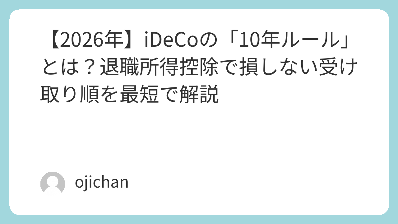 - 受け取り時期が 10年未満で近い(例:60歳でiDeCo一時金→65歳で退職金一時金 など)
