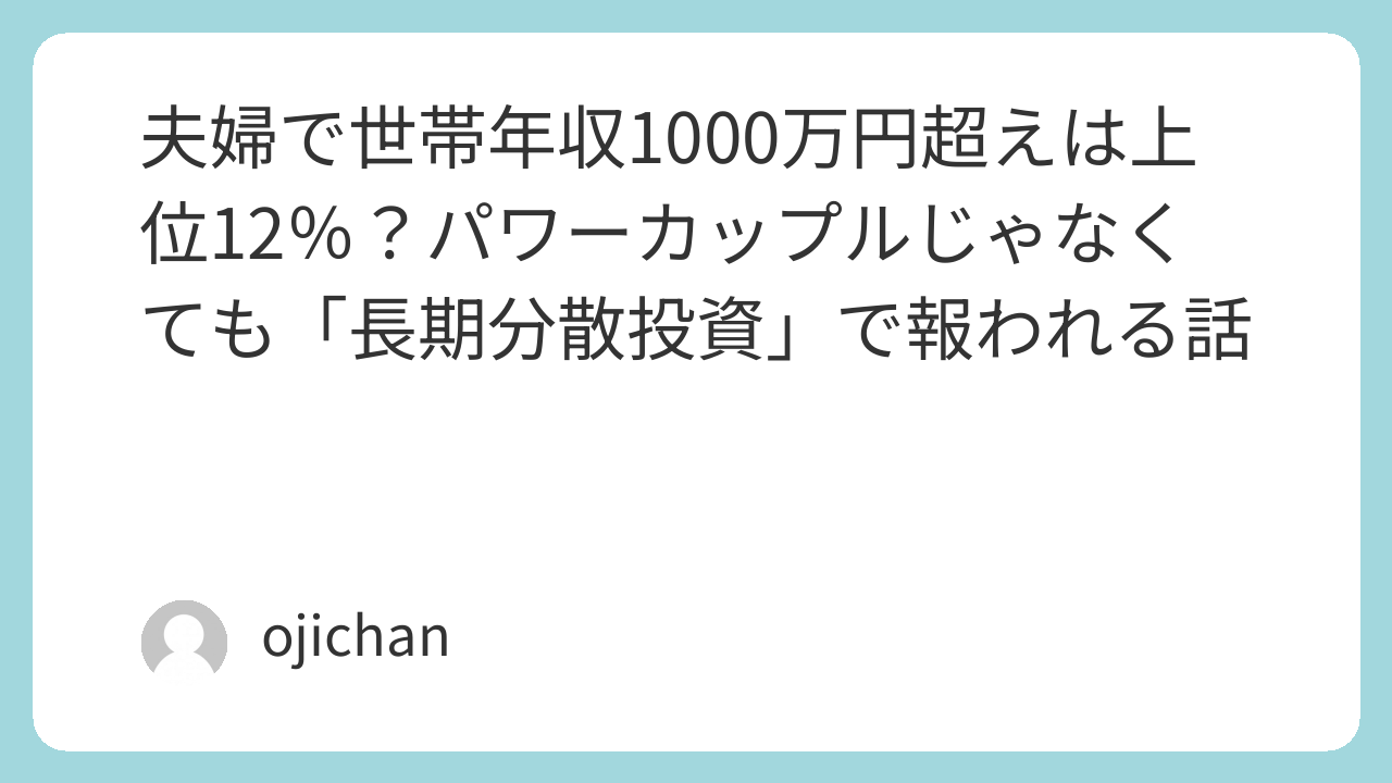 「パワーカップル」じゃなくても、長期分散投資なら報われる