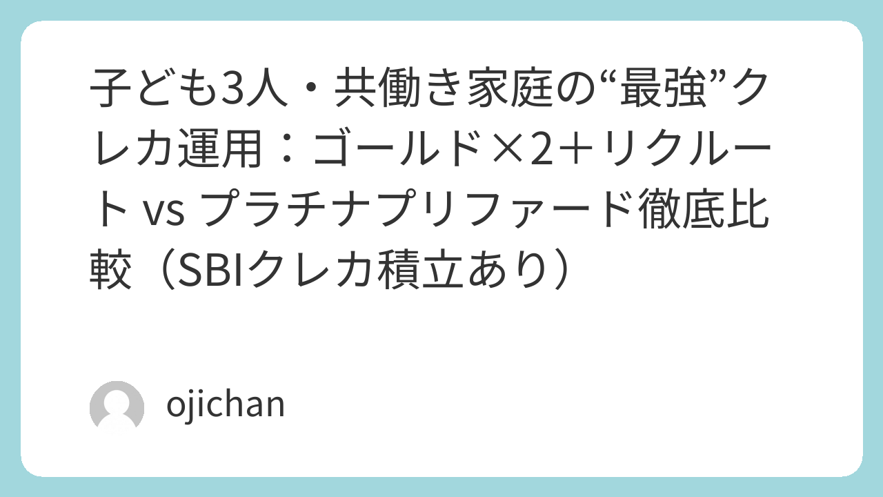 - **2028年以降「妻だけ積立」**になるなら、実利最重視=ゴールド×2+リクルート継続/管理の軽さ重視=PP+妻はゴールドを1枚残す。