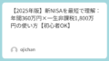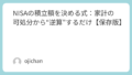 • 売却は最小限:NISAは売却で枠が復活しますが、基本は新規買いで寄せるだけでOK。金融庁