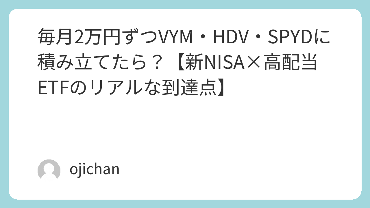 3. 伸ばすコツは、**“配当も再投資”→“必要額に届いてから受け取り”**の順。分散はVYM=広く、HDV=クオリティ、SPYD=高利回り寄り。