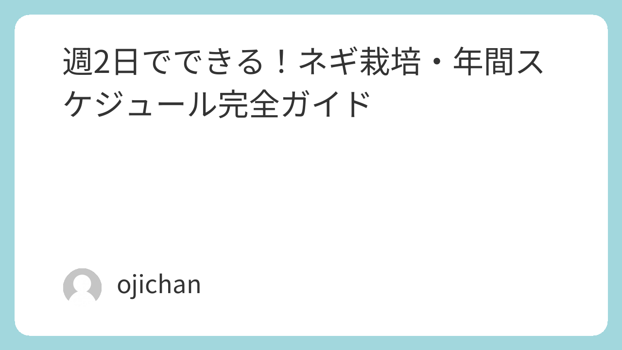リード:本業を続けながら週末だけでネギ農業を成立させたい――そんな副業就農・家族経営志望の方向けに、「週2日(各6時間目安)×年間600時間以内」で回せるネギ2作(春-夏/秋-冬)モデルの年間スケジュールをまとめました。圃場ローテーション、作業の塊化(バッチ化)、機械・外注の使い分け、労働時間試算までワンパッケージ。Excelテンプレでの管理も可能です(最後に案内あり)。
