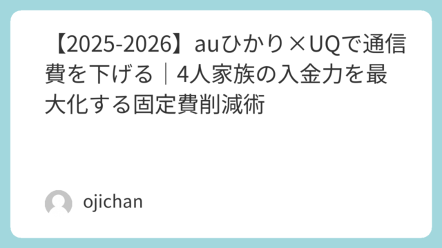 お金 【2025-2026】auひかり×UQで通信費を下げる|4人家族の入金力を最大化する固定費削減術