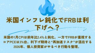 米国の1月CPIは前年比2.4%と鈍化。一方でFRBが重視するコアPCEは3%台。利下げ期待と“再加速リスク”が混在する2026年、個人投資家がやるべき行動を整理。