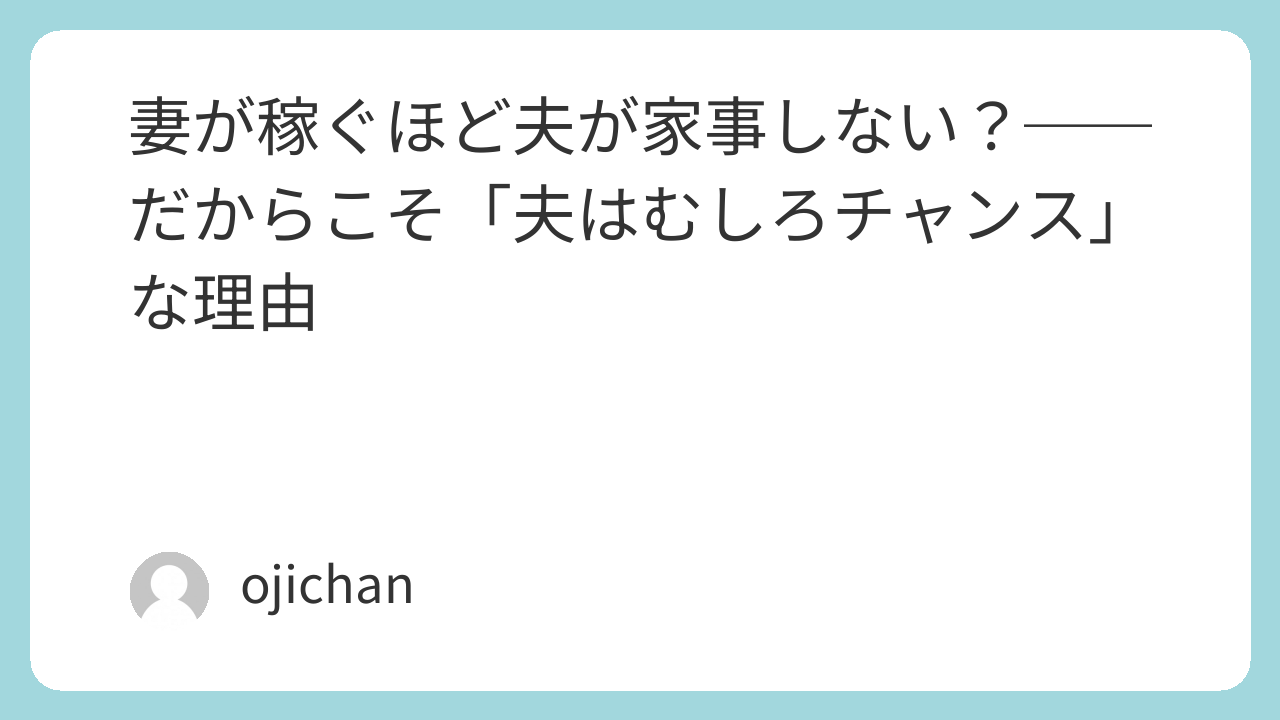 - 「稼ぎで勝負するのはやめた。家庭を回す力で勝負する」