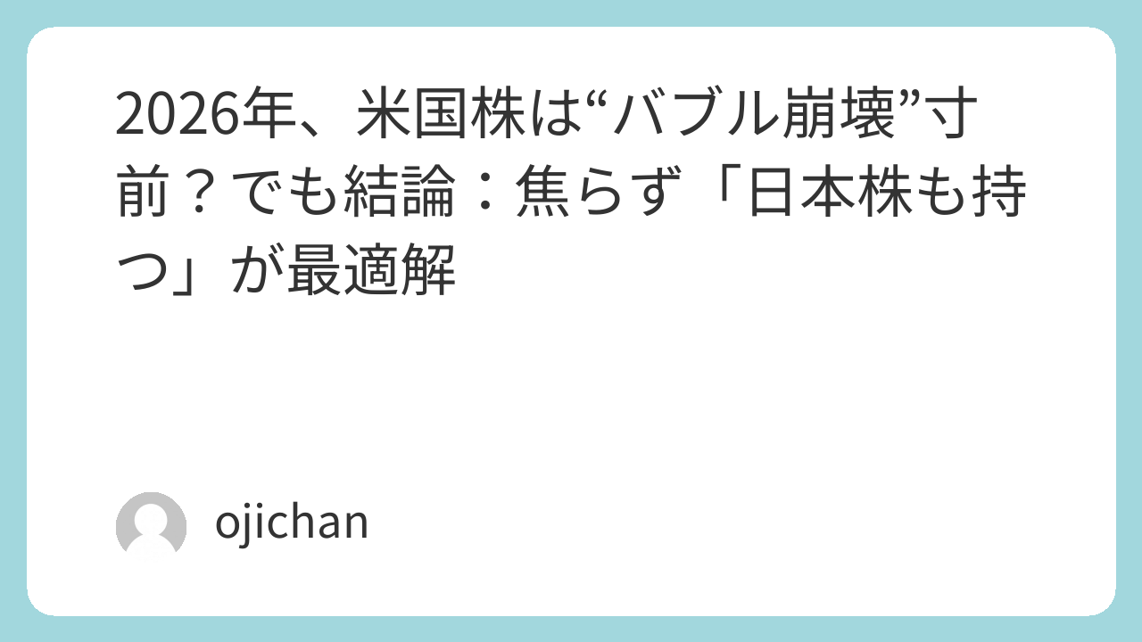 2026年、米国株は“バブル崩壊”寸前?でも結論:焦らず「日本株も持つ」が最適解